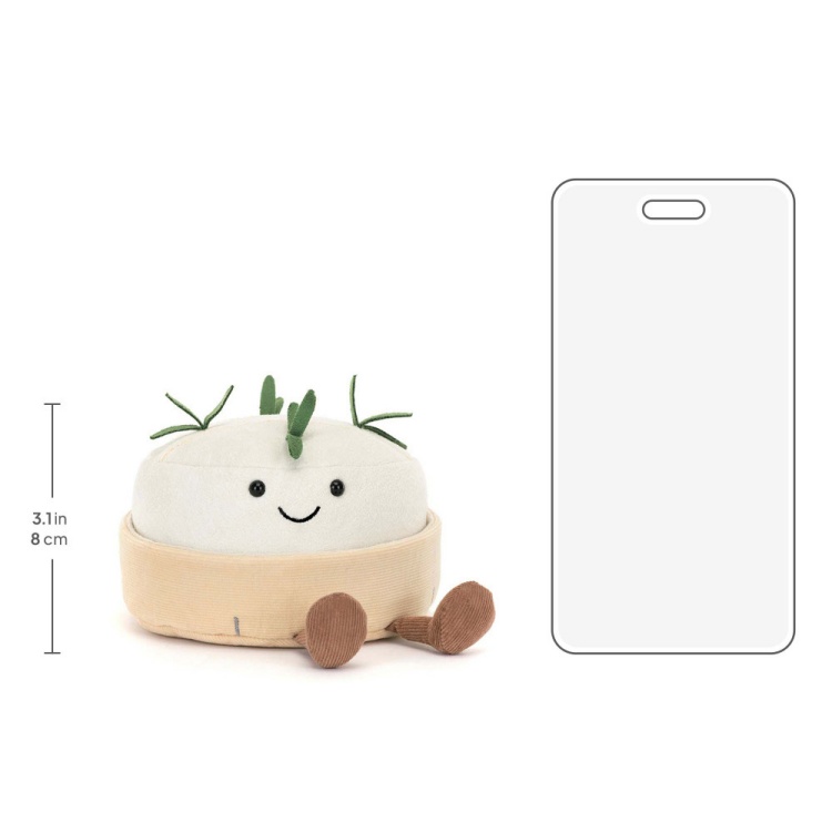 Amuseables Camembert is here to spread cheesy joy. This cream suedette cheese has stitched rind detail, and is topped with sprigs of suedette rosemary. Nestled in its fine cord container with staple detail, this smiling cheese can be taken out of its box for foodie hugs. The perfect gift for any foodie friend.