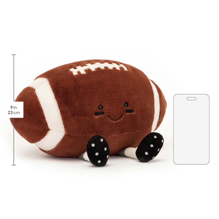 Amuseables Sports American Football is built for the big leagues. All bounce, no bluster, he’s a soft shell with strong opinions on half-time trombone solos. He still watches his college highlights every Thanksgiving (volume up, tears optional).