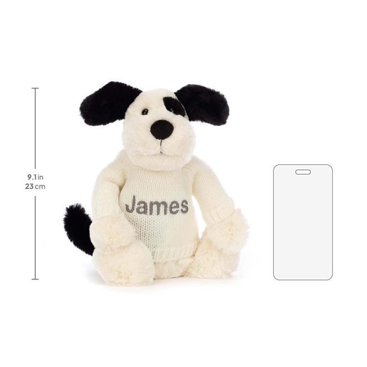 Bashful Black & Cream Puppy with Personalised Cream Jumper