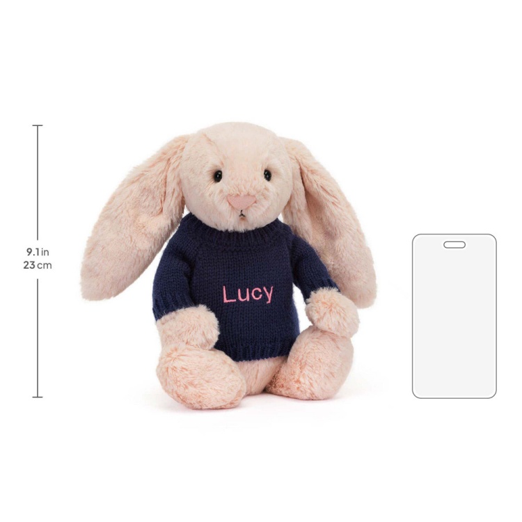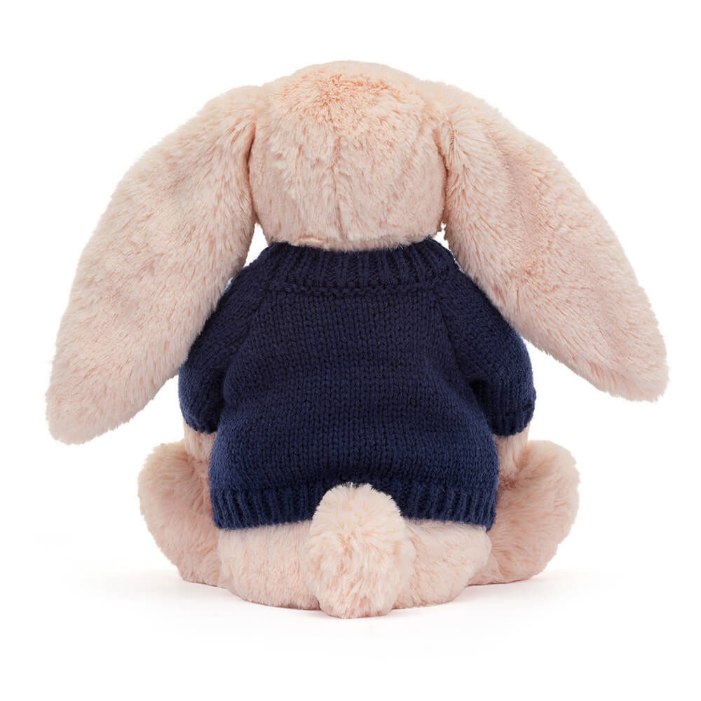 Bashful Blush Bunny with Personalised Navy Jumper