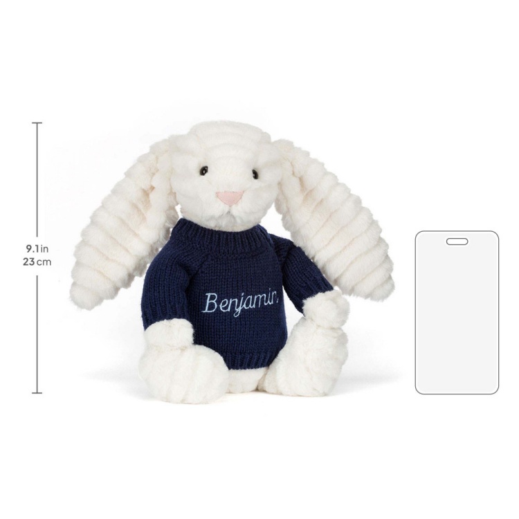 Bashful Luxe Bunny Nimbus with Personalised Navy Jumper