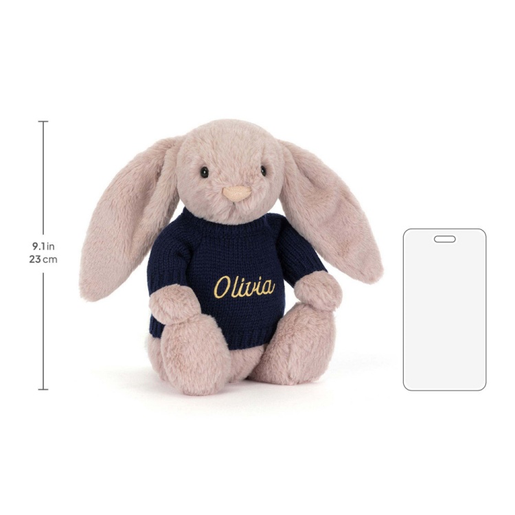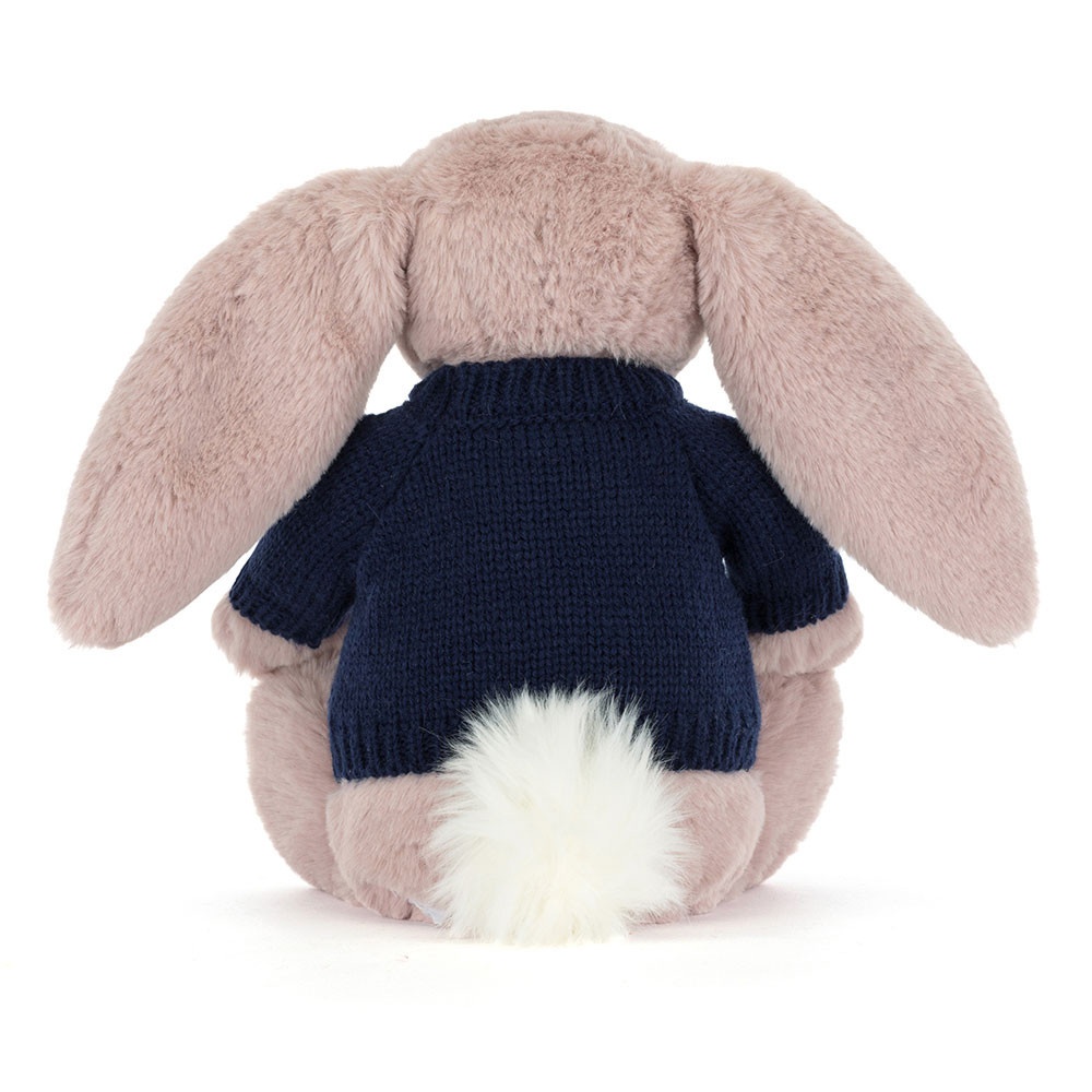 Bashful Luxe Bunny Rosa with Personalised Navy Jumper