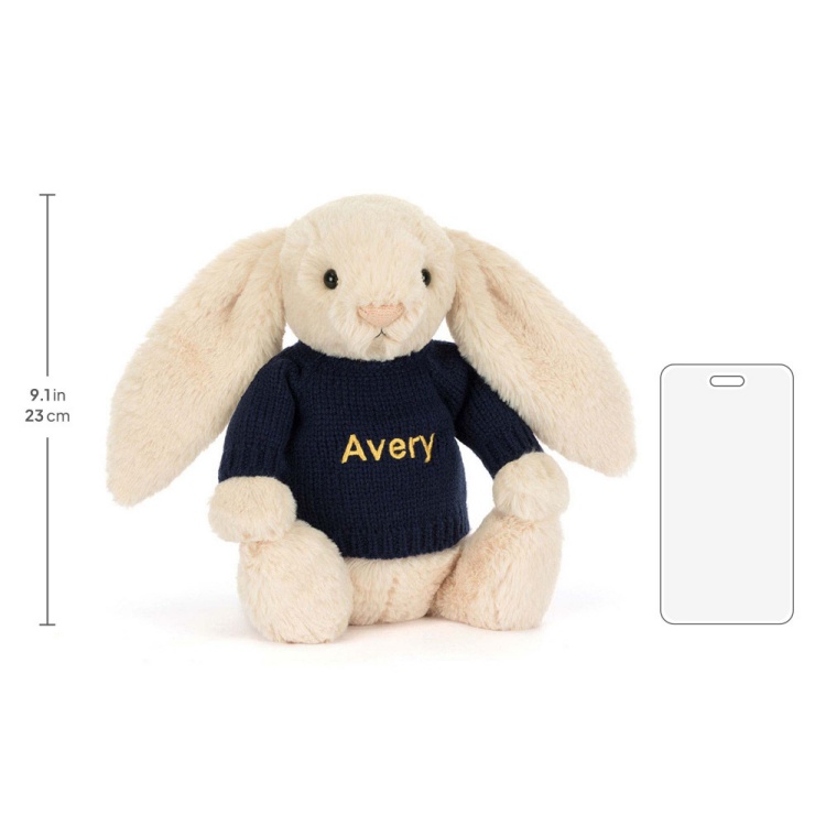 Bashful Luxe Bunny Willow with Personalised Navy Jumper