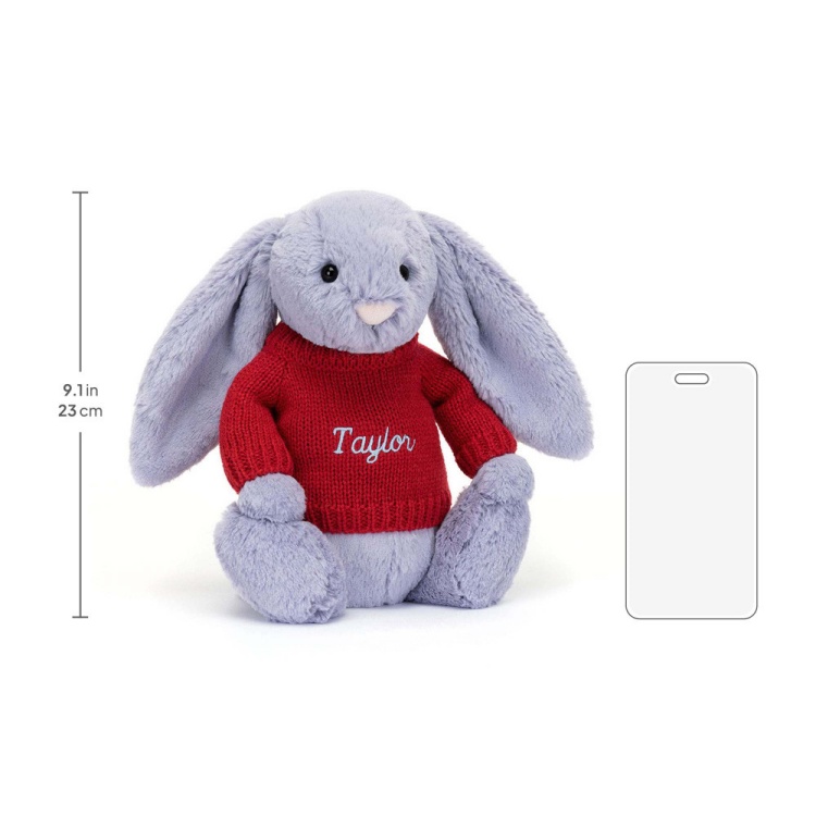 Bashful Viola Bunny is a super soft beloved Jellycats and can now be made extra special with a personalised red jumper! With a choice of fonts and thread colours, your bunny can truly be one of a kind!