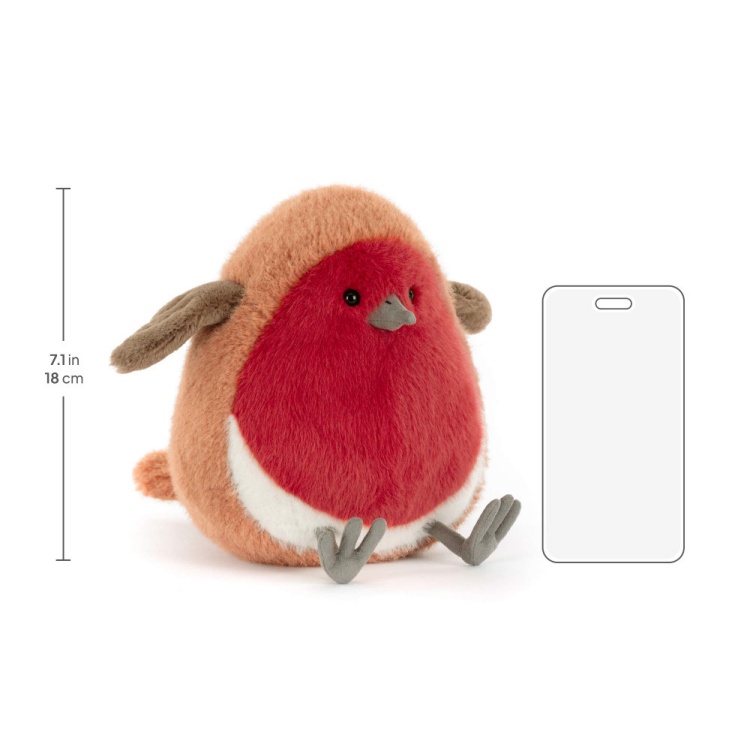 Plum Robin may be built for flight, but when winter comes, she’s strictly ground level. Wings outstretched, tail fluffed, and beak to the sky – she’s happiest making perfect snow angels.